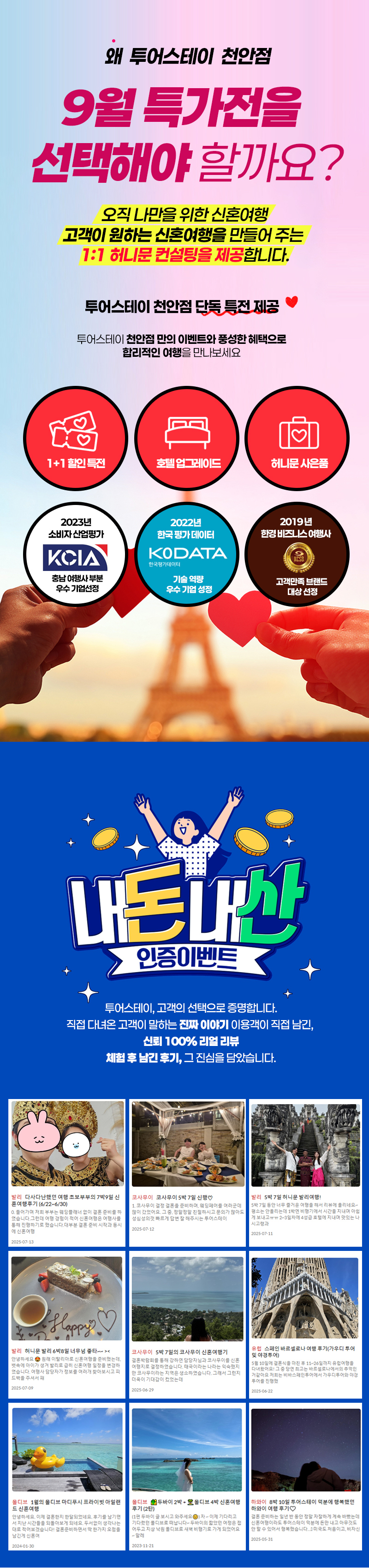 주최 : 투어스테이천안점 주소 : 충남 천안시 서북구 성정1길 24-1 투어스테이 천안점 사옥대표 : 탁경림 / 개인정도 책임관리자 : 신기순 사업자등록번호: 312-27-32663 관광사업자등록번호: 제2004-5호통신판매사업신고번호: 제2011-충남천안-198호Copyright ⓒ sweetty.co.kr All rights reserved.